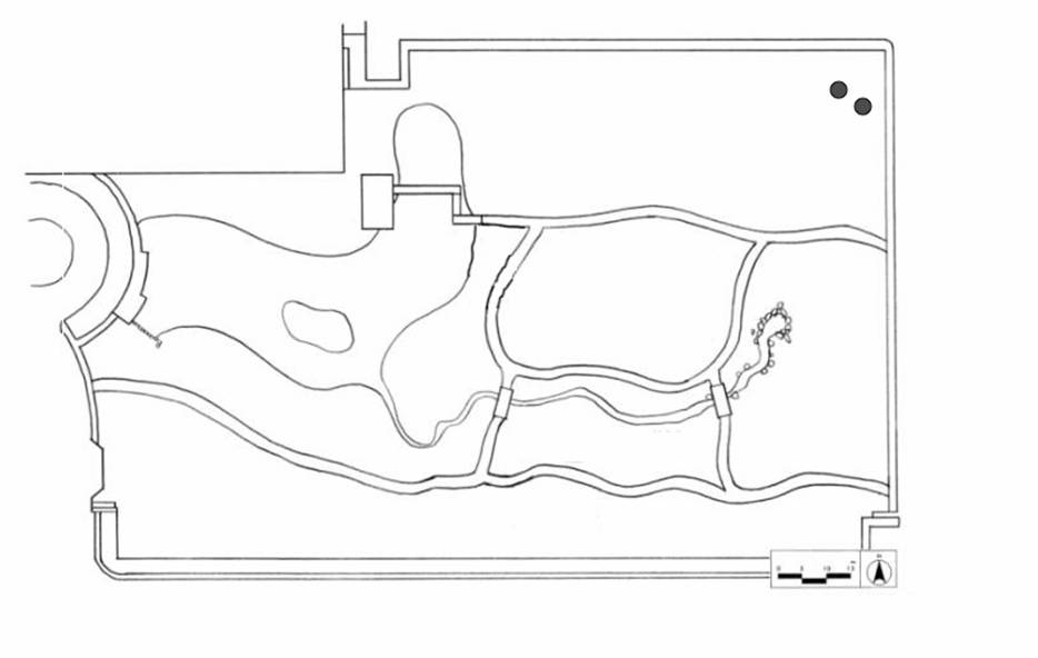 図15 アドバンテストビオトープにおける、イヌトウバナの分布位置。調査日は2007年5月18日、9月18日